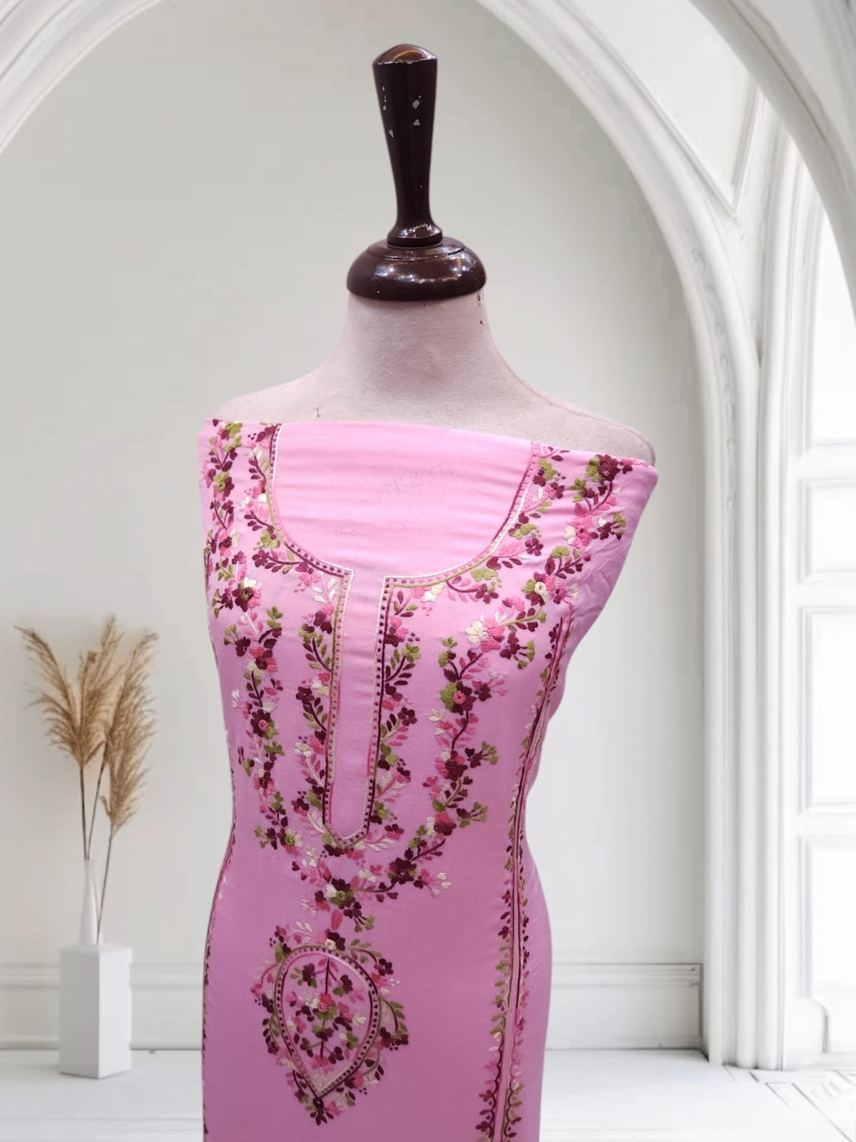 2pc Marina Candy Pink tarkashi with embroidery