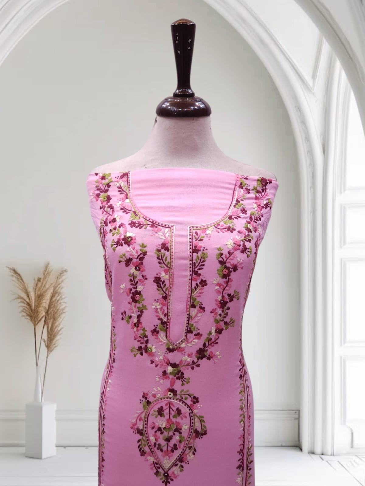 • Design: Hand embroidery featuring intricate patterns adorned with delicate mirror work, adding a touch of sparkle and sophistication.