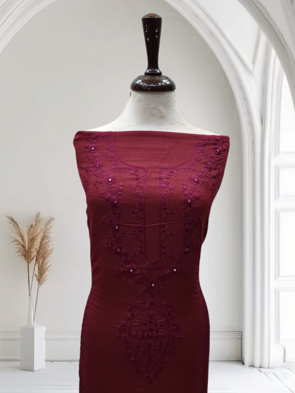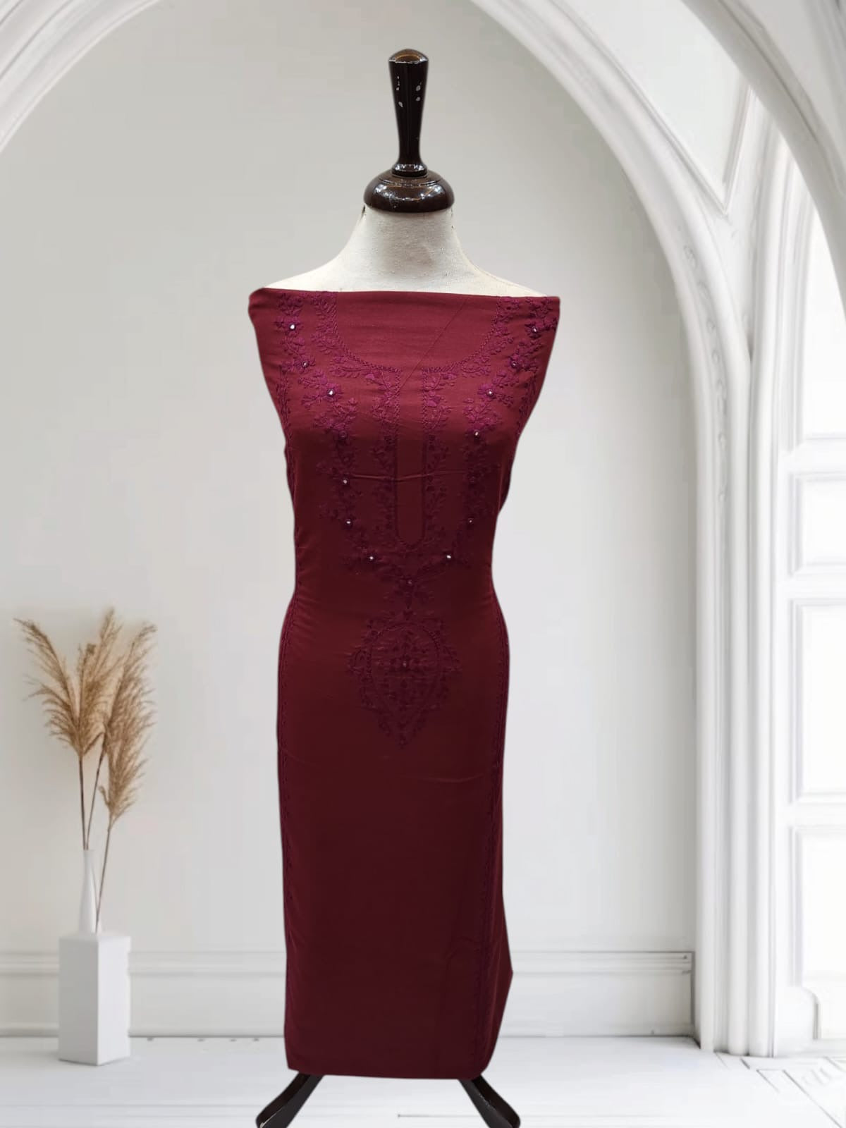 • Design: Hand embroidery featuring intricate patterns adorned with delicate mirror work, adding a touch of sparkle and sophistication.