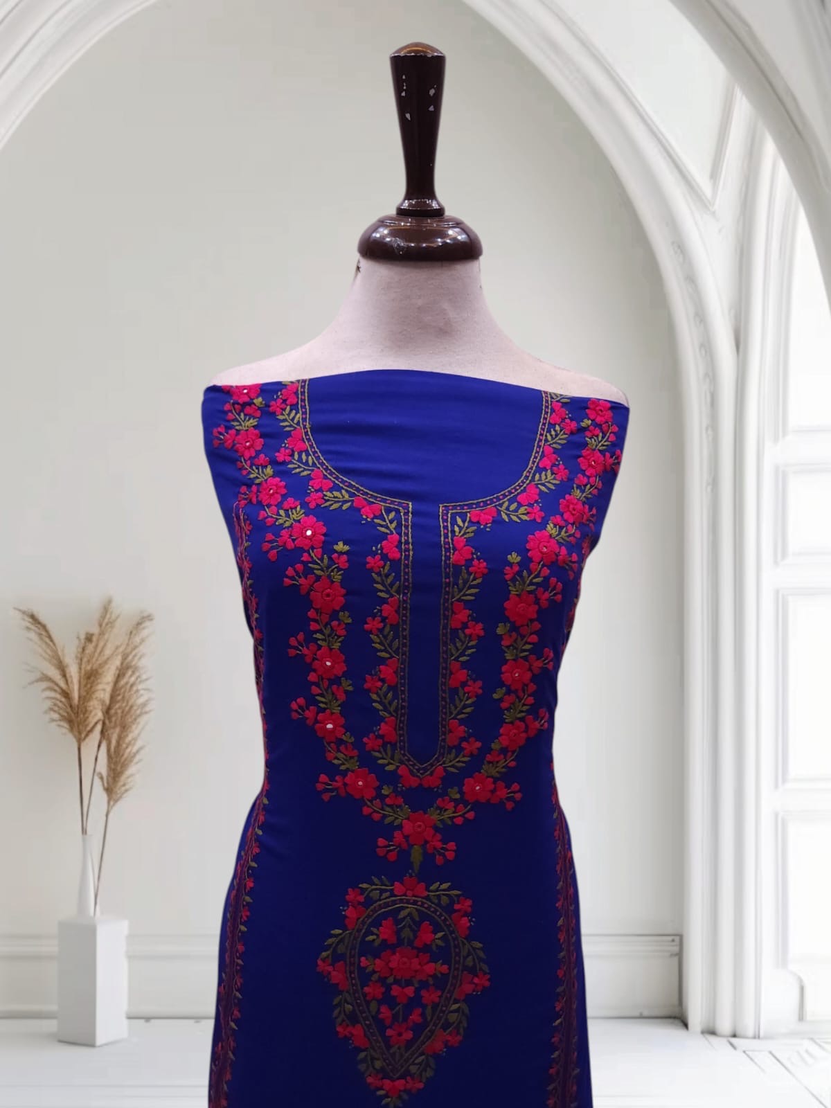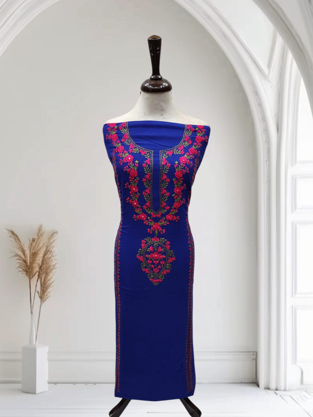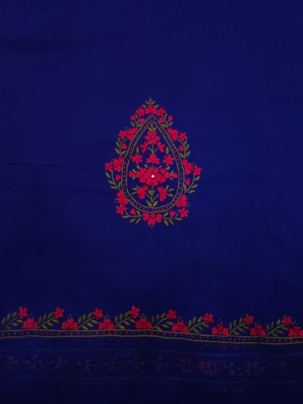 • Design: Hand embroidery featuring intricate patterns adorned with delicate mirror work, adding a touch of sparkle and sophistication.