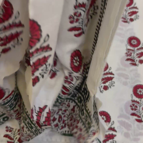 Block print lawn shirt & dupattaRed & green
