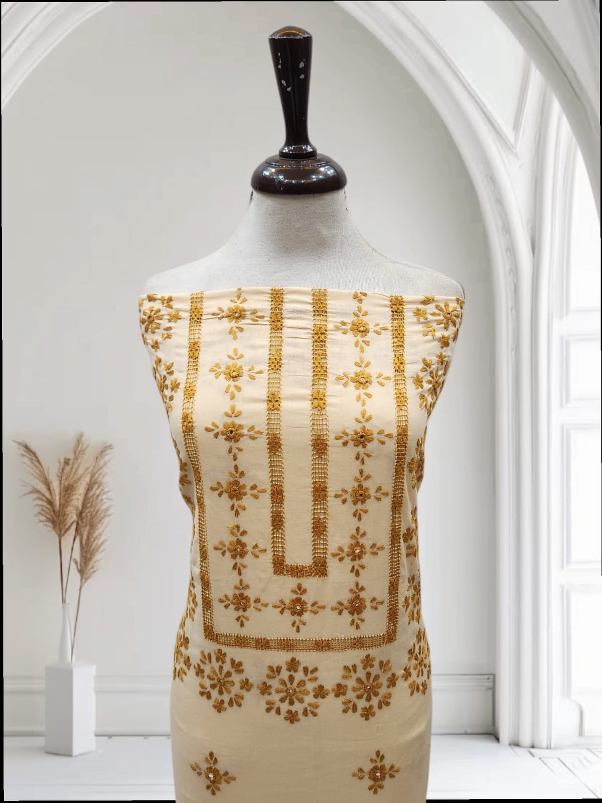This elegant lawn Tarkashi shirt is a perfect blend of tradition and affordability. Crafted with precision, the breathable lawn fabric ensures comfort, while the intricate Tarkashi (drawn thread work) embroidery adds a delicate, handcrafted charm. The subtle yet stylish design enhances its grace, making it ideal for both casual and semi-formal wear. Designed under budget without compromising on quality, this outfit is a testament to fine craftsmanship and affordability.