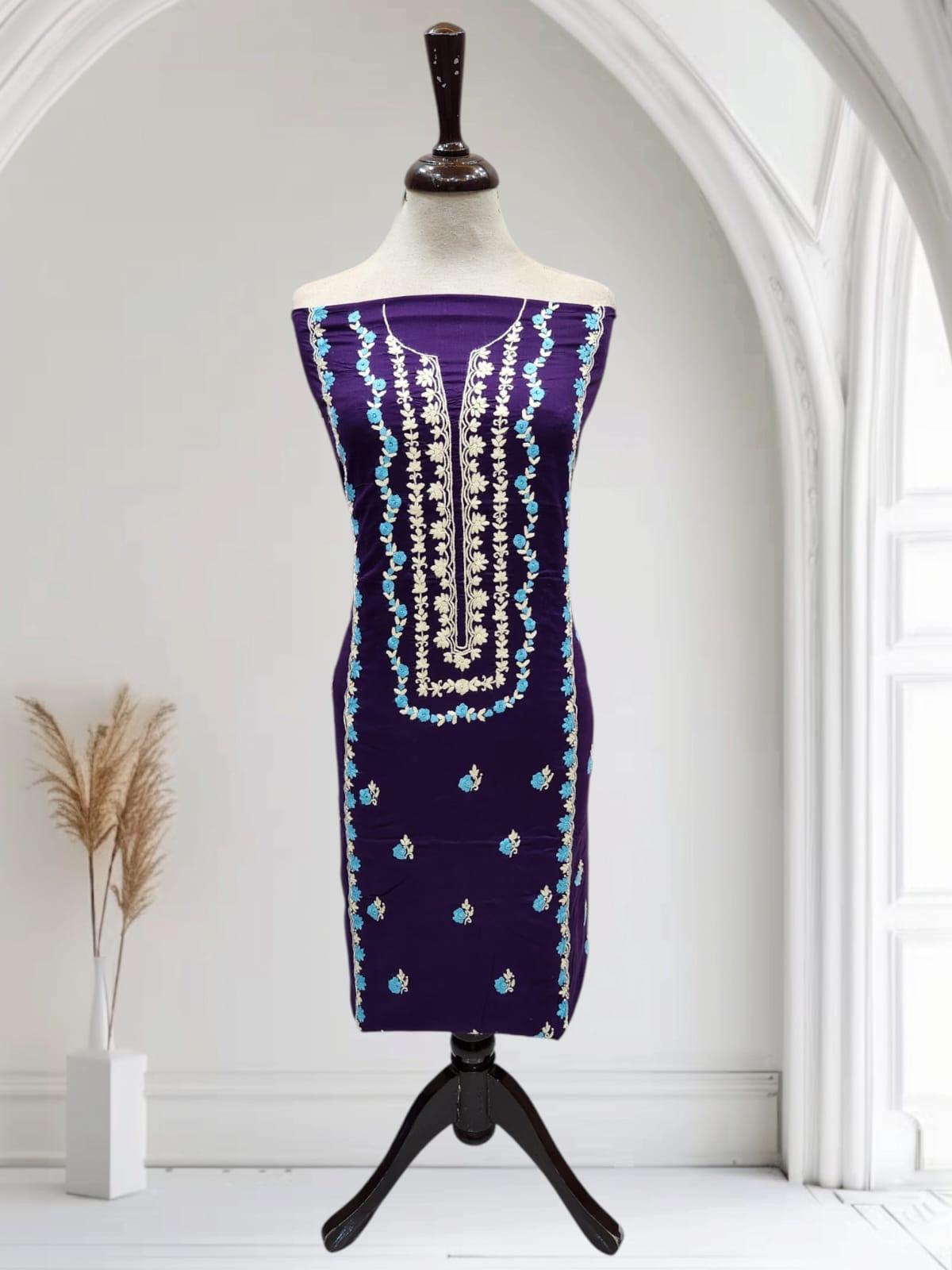 Discover our luxury hand embroidered unstitched lawn shirt, meticulously crafted by skilled artisans. This 3-meter unstitched lawn fabric features intricate handmade embroidery, requiring extra effort and precision due to the challenging black base. The fabric allows for a customizable shirt length of 46-47 inches, ensuring a perfect fit. Made with premium-quality lawn, it offers a breathable, lightweight feel, ideal for all seasons.