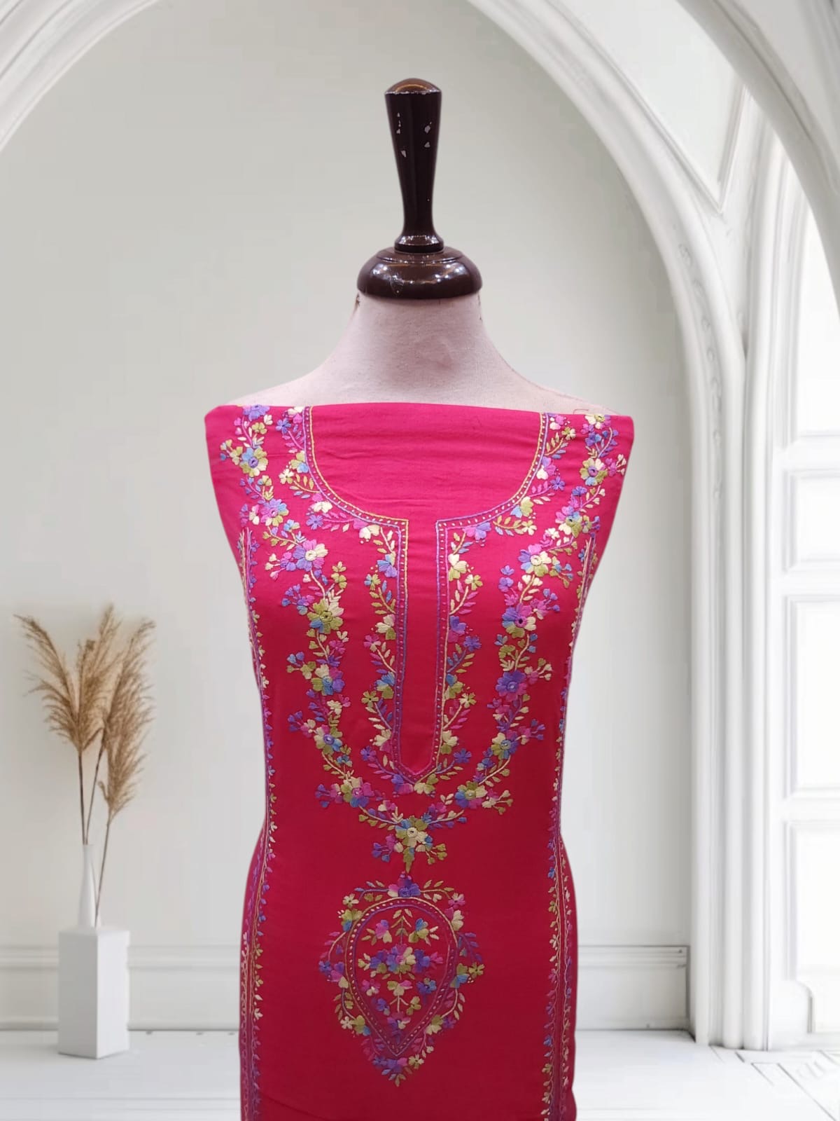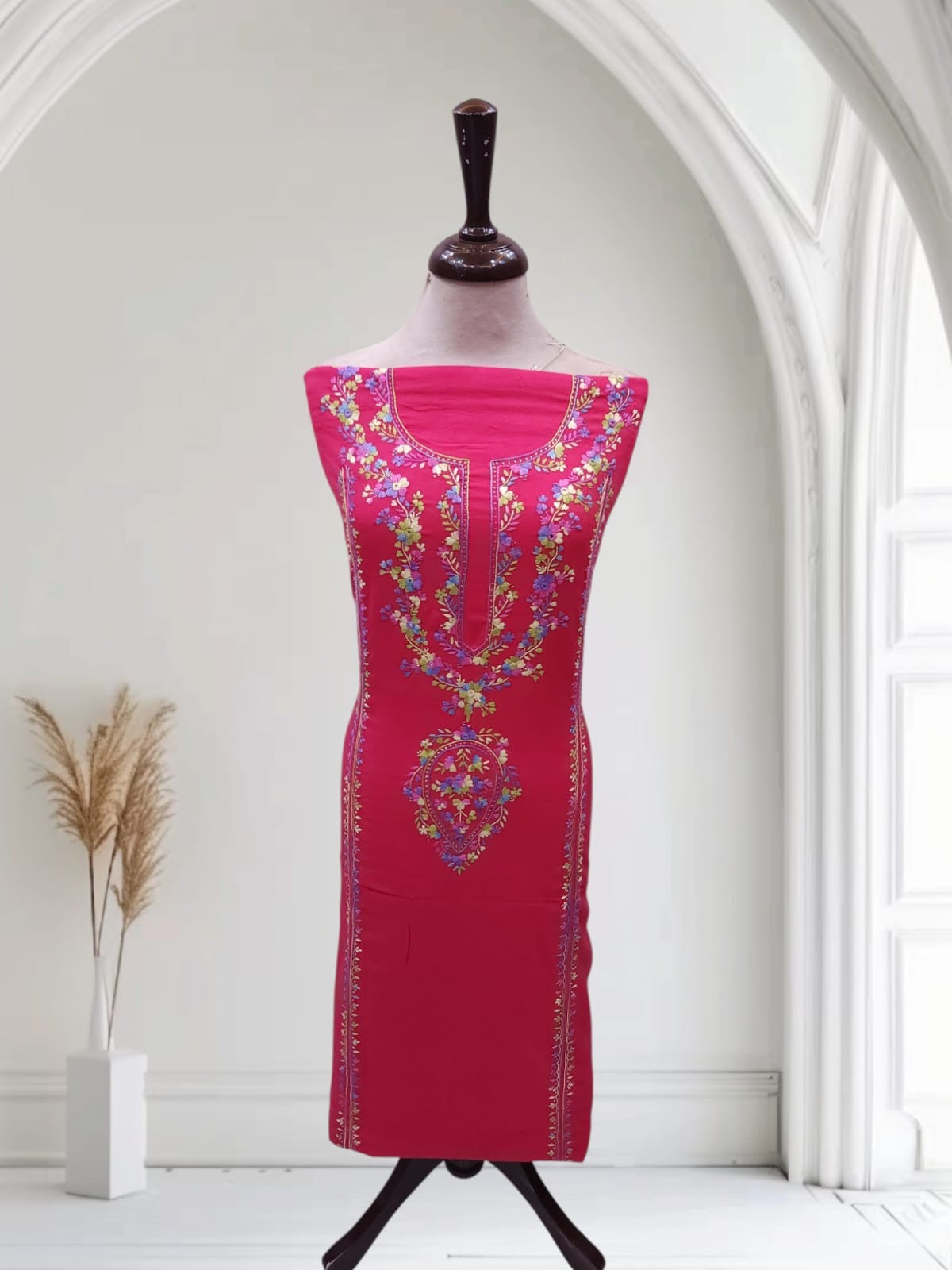 • Design: Hand embroidery featuring intricate patterns adorned with delicate mirror work, adding a touch of sparkle and sophistication.
