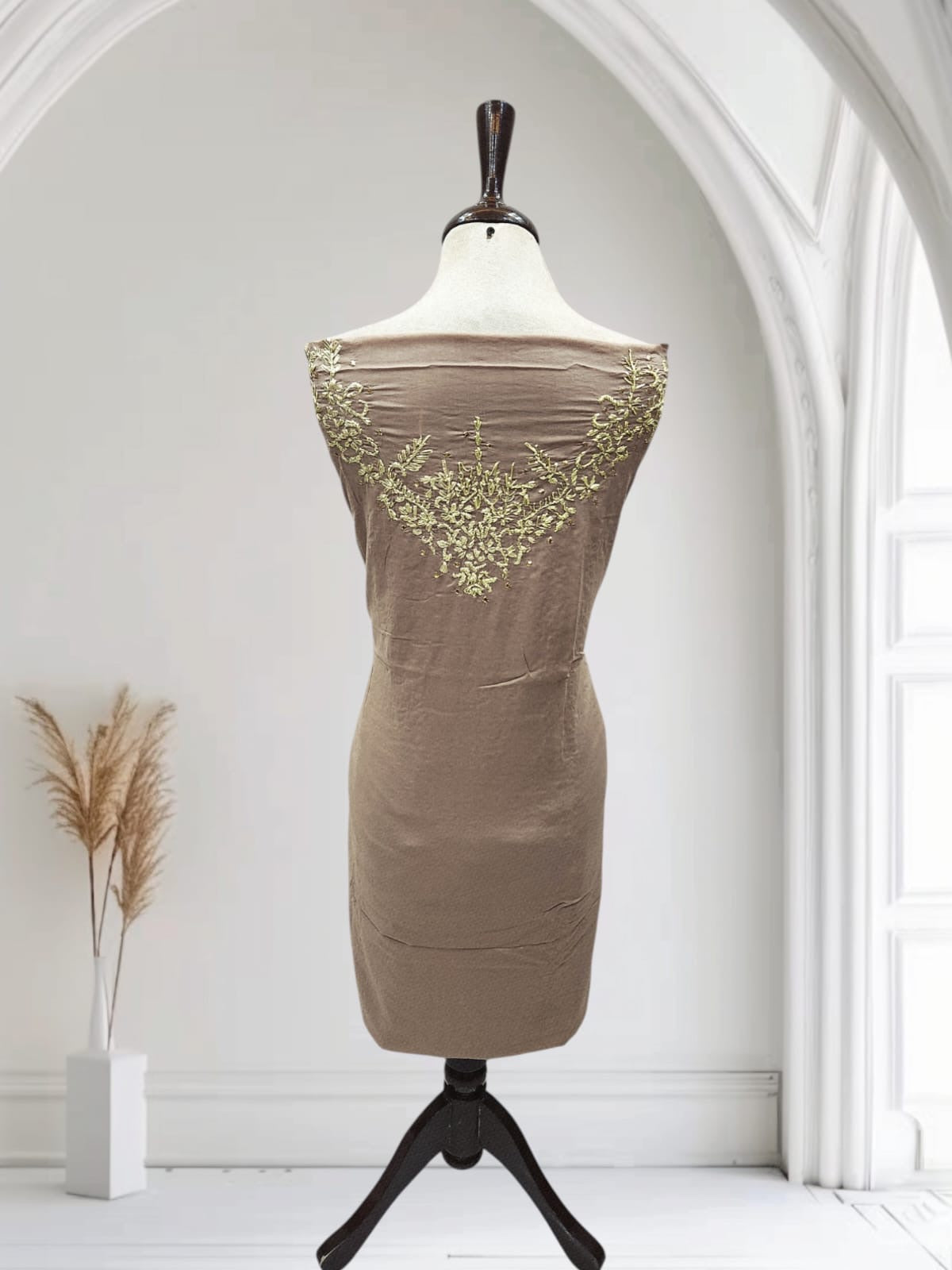Pure Lawn Dull Mud shade Gota with Mukesh 2pc Sale
