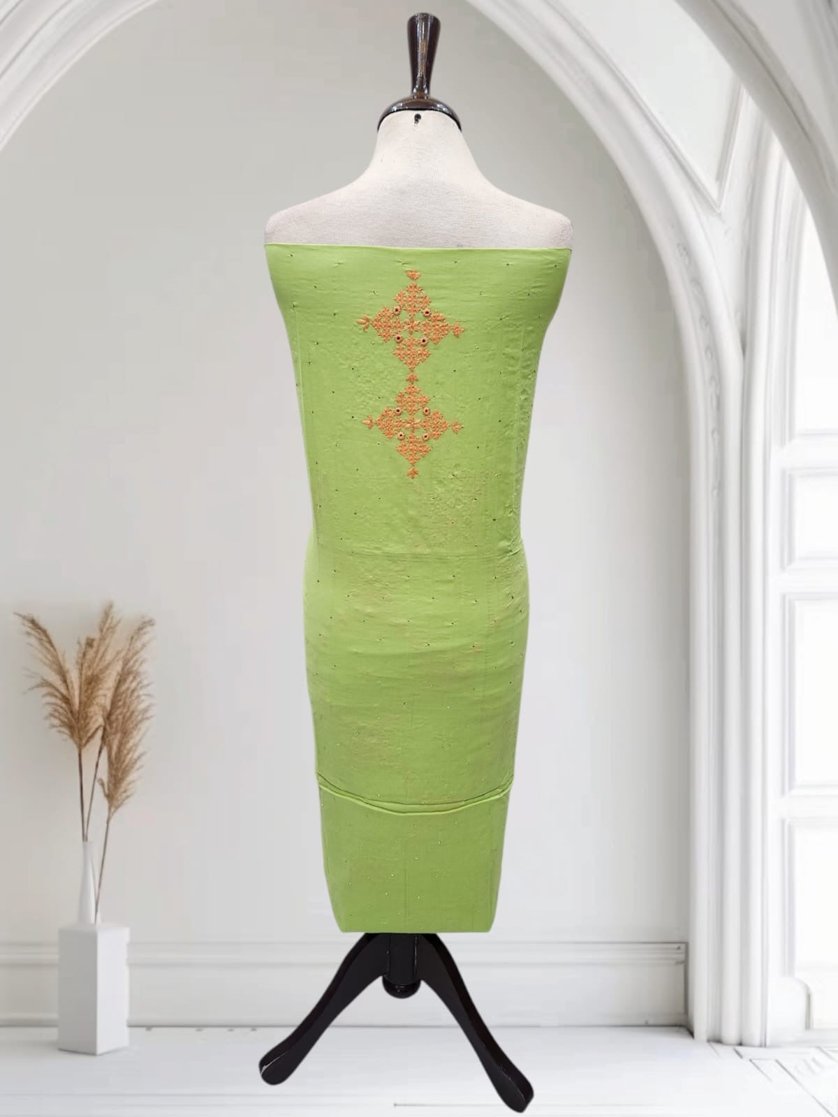 باریک tarkashi کے نقش آہستہ آہستہ اُبھرتے جا رہے تھے، ننھے پھول 🌼 ایک ایک کر کے کھل رہے تھے، آئینوں کی ہلکی سی چمک ✨ اور موتیوں کا کومل لمس کپڑے کو جیسے زندہ بنا رہے تھے۔